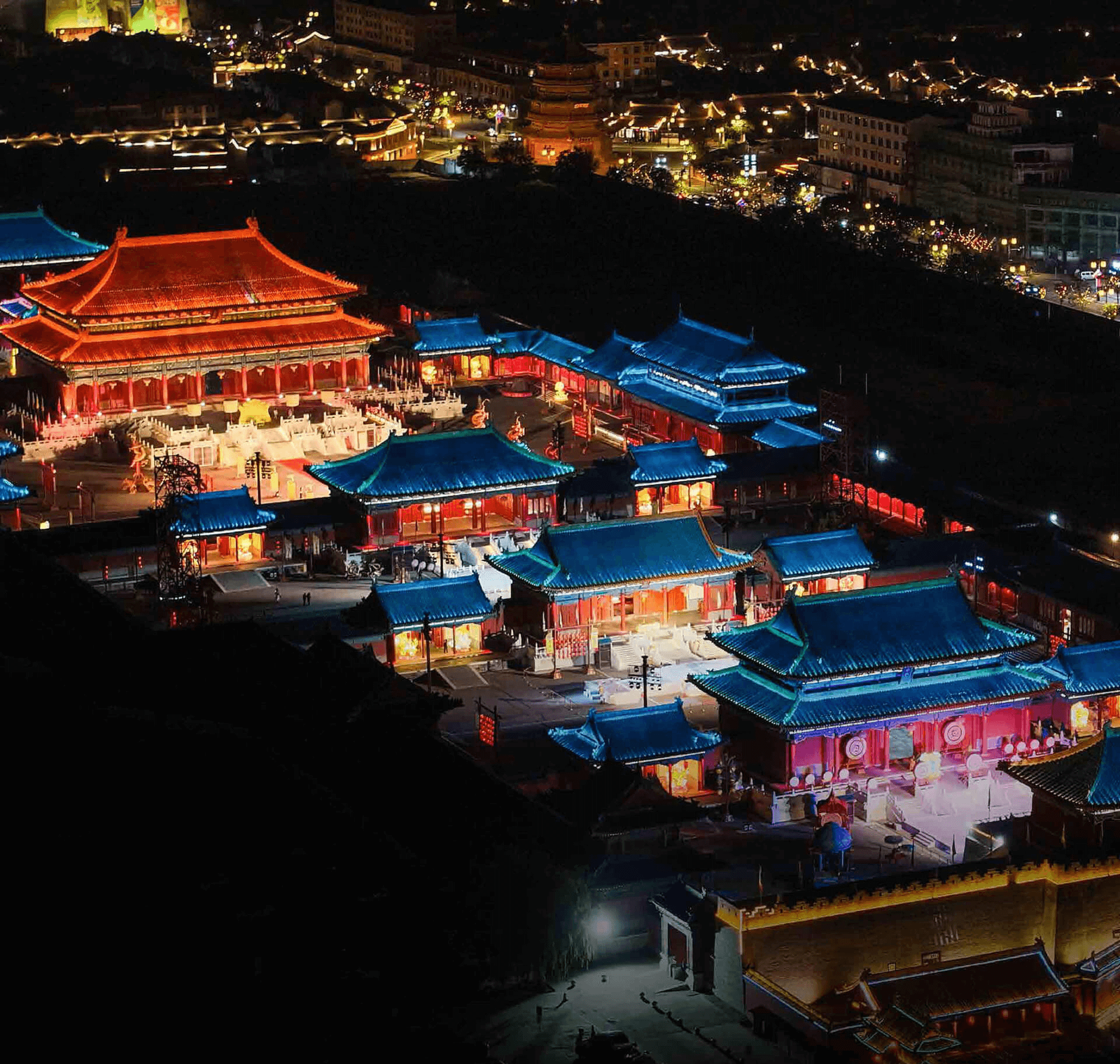 规划52个常设国家文旅商品馆与36个临时特色商铺,形成万商云集的繁荣场面。我们设有四个拓跋风情演艺舞台和七处民族文化图腾,并通过每日 “清晨开城、天黑张灯、收市祈福” 三大仪式,营造全天候的沉浸式氛围,免费向游客开放,确保持续高涨的人气。